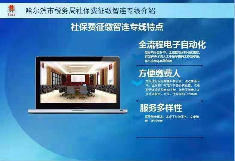 哈爾濱市稅務(wù)局社保征繳智連專線介紹頁面截圖。