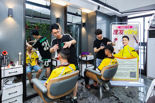 美團(tuán)外賣騎手享受九塊九理發(fā)服務(wù)。美團(tuán)外賣 供圖