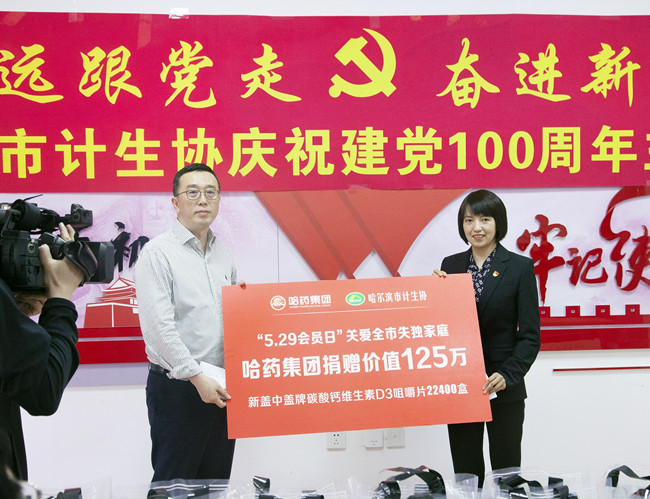活動(dòng)中,哈藥集團(tuán)向哈爾濱市計(jì)生協(xié)工作者和計(jì)生特殊家庭贈(zèng)送了價(jià)值125萬元的22400盒新蓋中蓋牌碳酸鈣維生素D3咀嚼片,并向現(xiàn)場(chǎng)參加活動(dòng)的計(jì)生特殊家庭贈(zèng)送了愛心禮包。