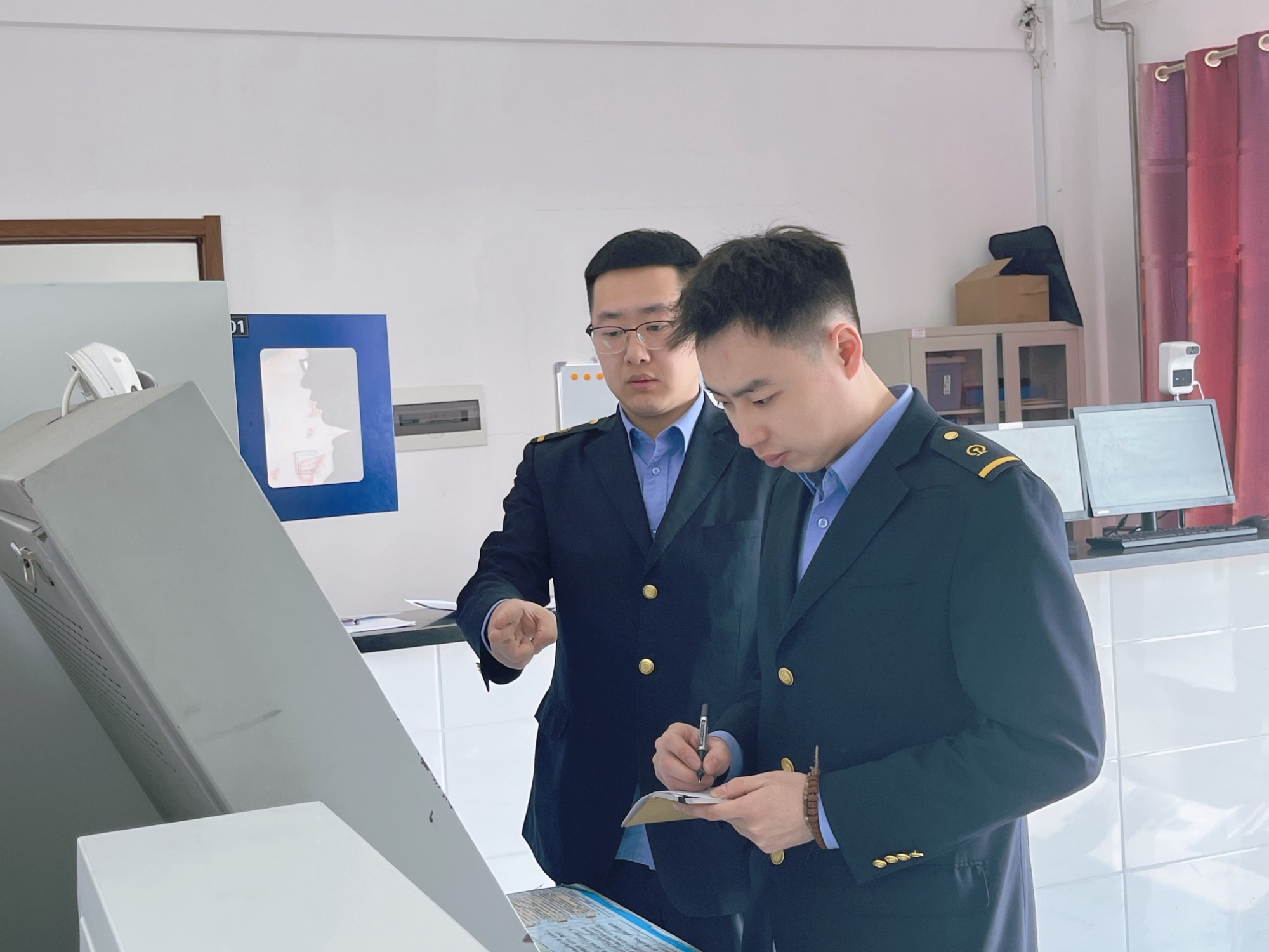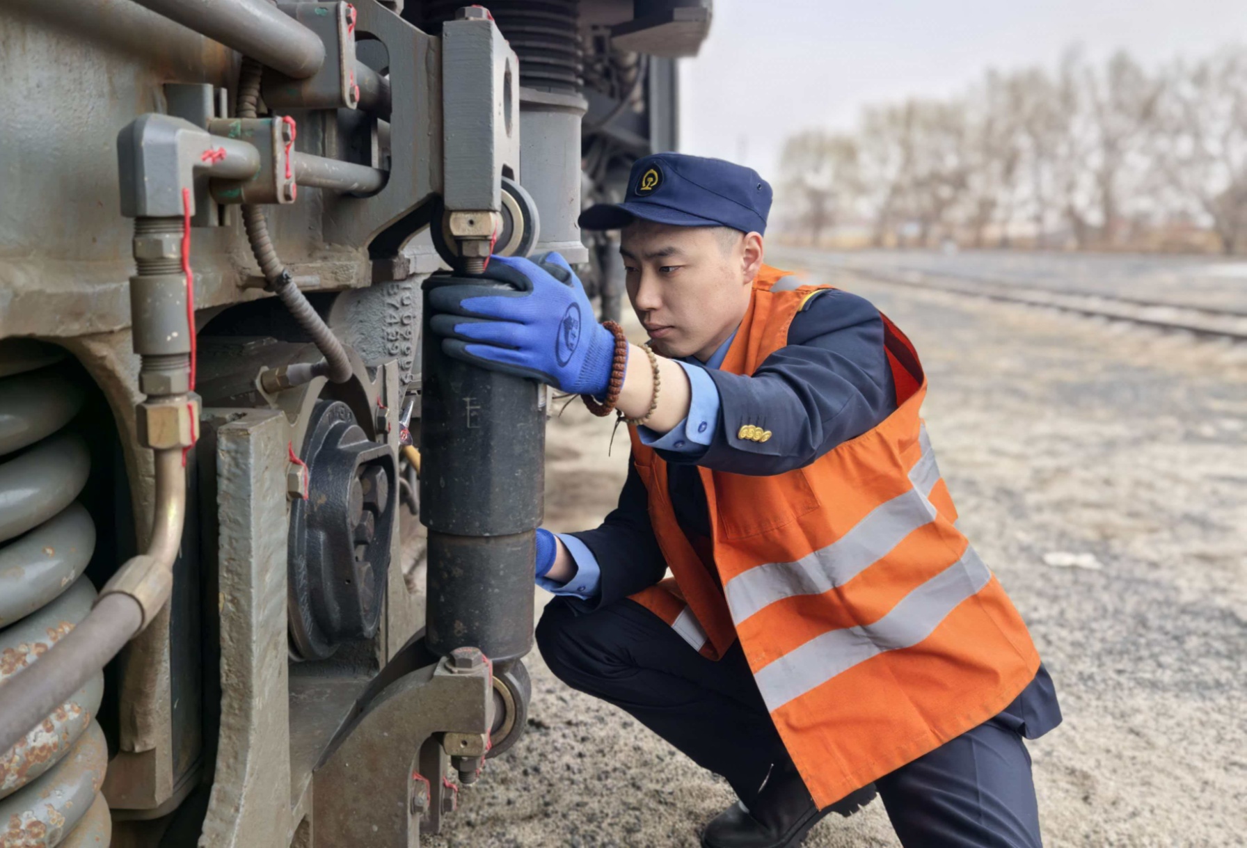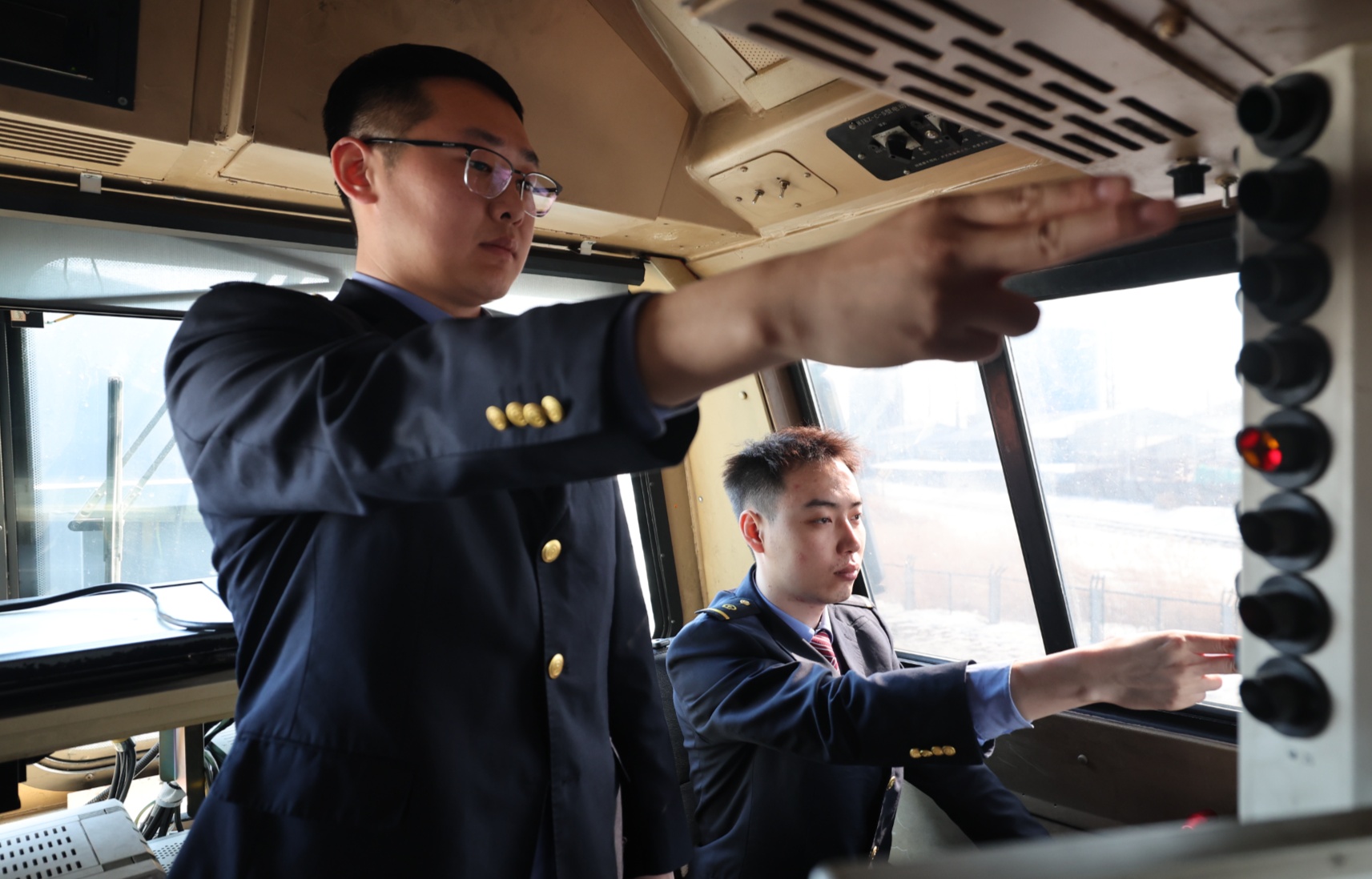 出乘前的檢查是安全的第一道關(guān)。在整備場(chǎng),崔佳瑋圍繞機(jī)車仔細(xì)檢查。“春天晝夜溫差大,機(jī)車外露大部件容易發(fā)生折損,走行部是重點(diǎn)!彼贿厙诟劳,一邊俯身查看車鉤、走行部等關(guān)鍵部位。二人配合默契,確保機(jī)車狀態(tài)良好。
