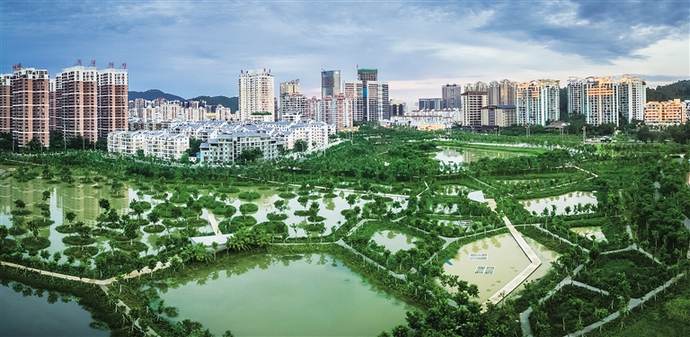 ?、三亞因?yàn)閮?yōu)良的生態(tài)環(huán)境,多次入圍中國(guó)宜居城市競(jìng)爭(zhēng)力十強(qiáng)。圖為三亞“雙修”項(xiàng)目之一東岸濕地公園初具雛形。 海南日?qǐng)?bào)記者 李幸璜 攝