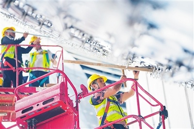 工人們加快推進項目建設(shè)。