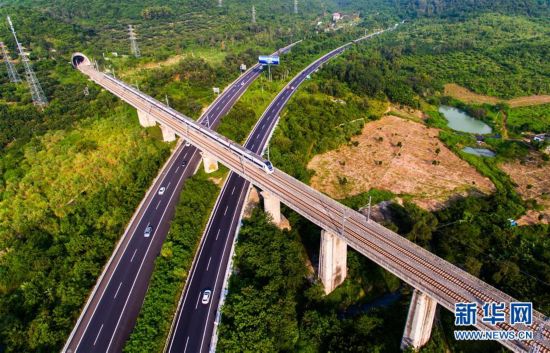 這是10月11日航拍的海南環(huán)島高鐵東線三亞段。三亞,位于海南島的最南端,由一個(gè)小漁村發(fā)展成了今天著名的旅游城市。新華社記者通過(guò)無(wú)人機(jī)航拍帶你領(lǐng)略美麗三亞的風(fēng)采。新華社記者 楊冠宇攝