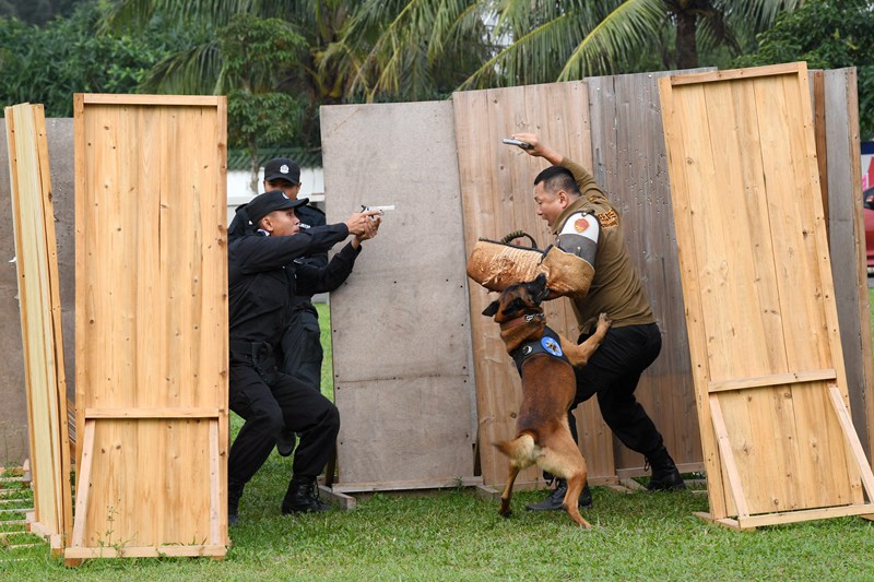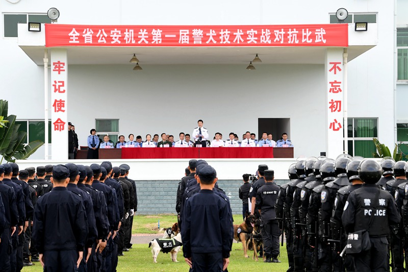 人民網訊 12月5日上午,海南省公安機關第一屆警犬技術實戰(zhàn)對抗比武開幕式在省公安廳刑警總隊警犬訓練基地拉開帷幕。省公安廳黨委書記、廳長范華平出席開幕式并講話。范華平強調,全省公安機關警犬技術工作要以黨的十九大精神為統(tǒng)領,緊緊圍繞新時代海南公安工作的新任務、新要求,牢固樹立“工匠精神”理念和“首戰(zhàn)用我、用我必勝”的信心和決心,不斷提升警犬技術訓練水平和實戰(zhàn)能力,不斷拓寬警犬技術使用領域,在打擊、預防犯罪和維護社會治安穩(wěn)定工作中發(fā)揮更大作用,努力開創(chuàng)全省警犬技術工作新局面。 -