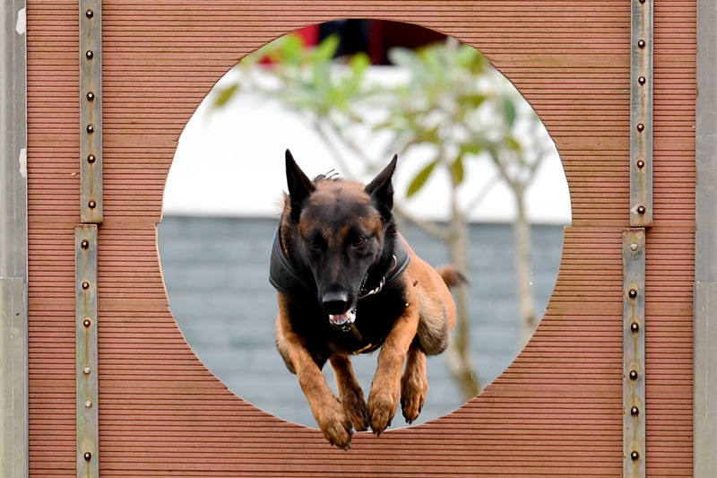 上午9點,警犬技術匯報演練正式開始,進行匯報演練的是從全省174名警犬技術人員和238頭警犬中選撥出來的優(yōu)秀代表,共有單犬服從、穿越障礙、箱包搜毒、飛車撲咬、車輛搜爆、追蹤、房屋搜捕、制服暴恐分子(雙犬撲咬)、群體性事件處置等九個項目,現(xiàn)場氣氛濃厚,競爭激烈。此次警犬技術實戰(zhàn)對抗比武為期三天,來自全省公安機關的59名帶犬民警和45頭警犬將參加追蹤、搜捕、搜毒、搜爆等4個科目的比武,將決出團體前三名和4個單項科目的前三名,參加比武的都是勤學苦練、甘于奉獻的基層警犬技術人員,他們積極使用警犬技術維護一方平安,為建設平安海南默默貢獻力量。 -