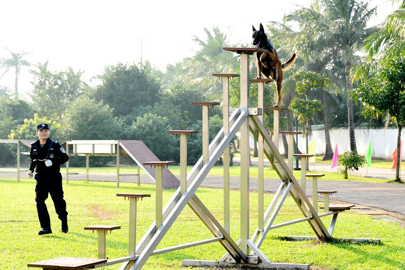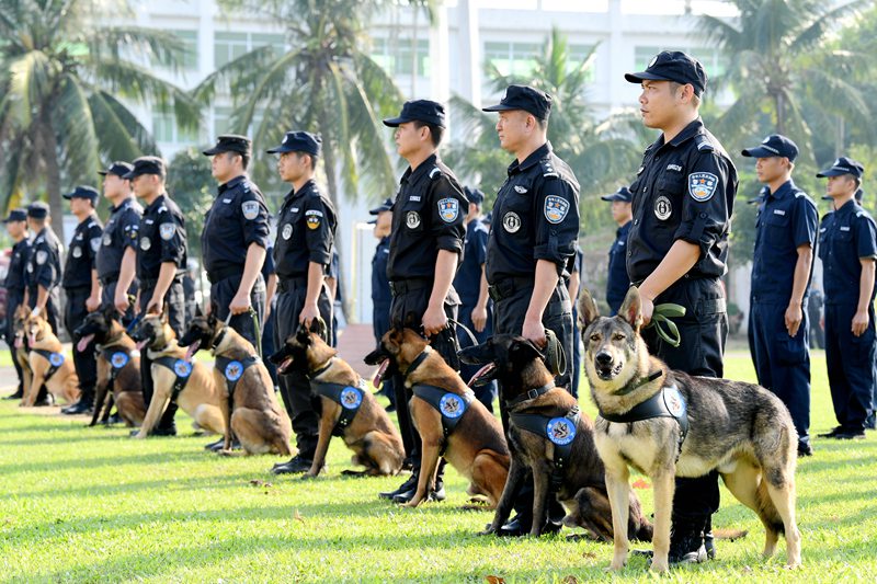 近年來,在海南省公安廳黨委的堅強領導下,在公安部五局和公安部昆明警犬基地的大力支持和指導下,海南的警犬技術工作取得了長足的進步。目前海南警犬技術工作以省公安廳警犬基地為龍頭,共有15個市縣相繼建立了警犬技術工作機構,全省警犬技術力量不斷發(fā)展壯大,警犬數(shù)量持續(xù)增長,訓練水平穩(wěn)步提升,警犬技術服務實戰(zhàn)能力不斷增強。 -
