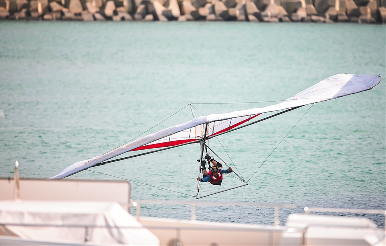 1月1日,萬寧石梅灣,航空愛好者正在參加第八屆中國鳥飛人大賽競技,用獨特的飛行方式迎接新年的到來。海南日報記者 袁琛 攝
