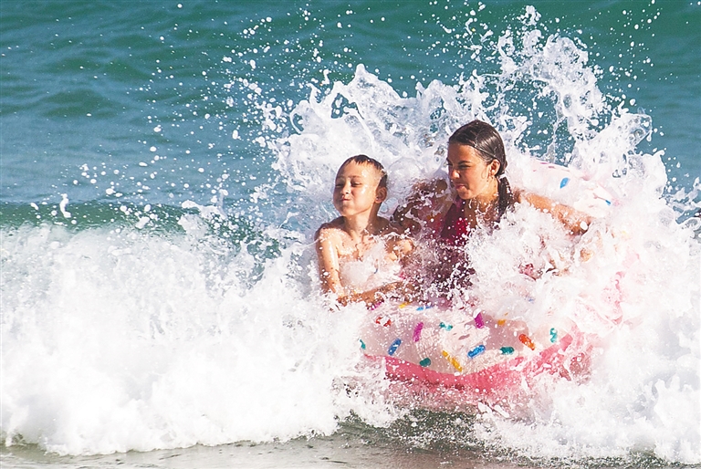 游客在三亞大東海嬉水。海南日報(bào)記者 武威 攝