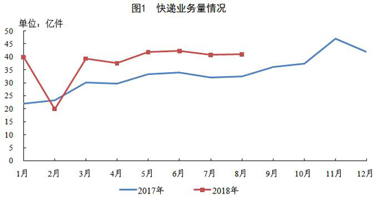 12日,國家郵政局公布2018年8月及1-8月郵政行業(yè)運行情況。數(shù)據(jù)顯示,2018年1-8月份,全國快遞服務企業(yè)業(yè)務量累計完成302.6億件,同比增長27.2%。