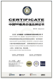 北汽新能源二度上榜中國500最具價(jià)值品牌榜單