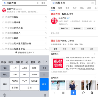 (用戶(hù)在百度App上主動(dòng)搜索商家名稱(chēng)即可跳轉(zhuǎn)到小程序一鍵下單。)