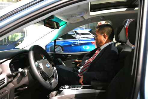 漁陽集團黨委書記、董事長李偉杰現(xiàn)場體驗EU7網約車專車版