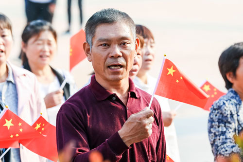 上午8點,鄭州方特旅游度假區(qū)音樂噴泉廣場前,隨著《歌唱祖國》的旋律響起,生在新中國、長在紅旗下的四代人唱響了對祖國的贊歌。在歌聲的感染下,越來越多的群眾自發(fā)加入到合唱的隊伍中,現(xiàn)場氛圍隆重而熱烈。
