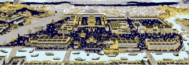明清經(jīng)典則再現(xiàn)了明清兩代云錦鼎盛時期的藝術(shù)特點。當(dāng)時,朝廷在南京設(shè)立官辦織造局,生產(chǎn)和管理御用錦緞,為皇家、官府提供服務(wù)。這時的南京織錦工藝發(fā)展到了一個新的高度,其產(chǎn)品裹金攜銀、瑰麗典雅,織紋形如堆云,圖案色彩絢爛如云霞,無論是數(shù)量還是藝術(shù)成就都是云錦史上的巔峰。