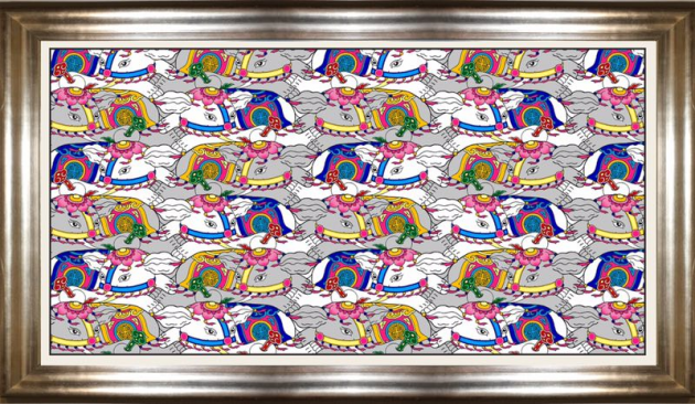 視錯藝術(shù)主題是傳統(tǒng)工藝的現(xiàn)代表達。視錯藝術(shù)就是一種西方式的造型藝術(shù),藝術(shù)家利用圖形錯覺使自己的作品具有多重意義。金文大師在云錦創(chuàng)作中運用了這種藝術(shù)手法,通過不同圖案元素相互聯(lián)系,交錯變化,營造出視錯效果,給人以強烈的視覺沖擊力,增加了云錦的趣味性和現(xiàn)代感。