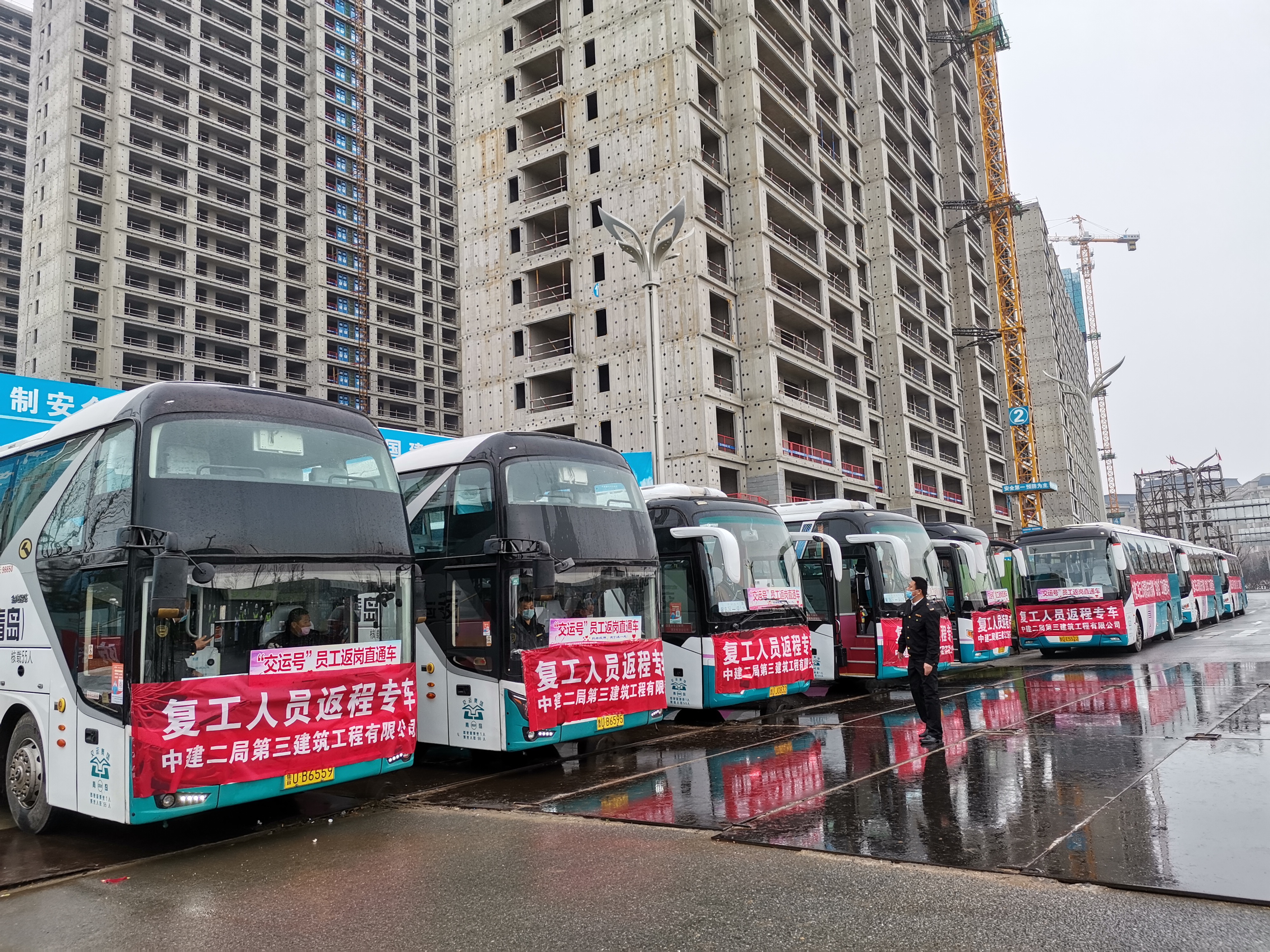3月7日上午,在直營(yíng)業(yè)務(wù)部黨委、紀(jì)委的幫助下,東方影都項(xiàng)目紀(jì)檢小組組長(zhǎng)趙忠星的組織項(xiàng)目攜手青島西海岸交運(yùn)集團(tuán),準(zhǔn)備了11輛專(zhuān)車(chē)“點(diǎn)對(duì)點(diǎn)”接返程勞務(wù)人員。本次“點(diǎn)對(duì)點(diǎn)”返崗直通車(chē)途徑云南保山、貴州銅仁、四川廣元、安徽、河南及河北等六省十五市,計(jì)劃接回工人師傅230余人。專(zhuān)車(chē)上準(zhǔn)備了充足的防疫物資、食品和飲用水,并且每輛專(zhuān)車(chē)安排了1-2名項(xiàng)目管理人員全程跟蹤檢測(cè),務(wù)必確保勞務(wù)人員返程過(guò)程中的安全和健康。據(jù)了解,本次“點(diǎn)對(duì)點(diǎn)”接人專(zhuān)車(chē)最快的預(yù)計(jì)3月8日可返回項(xiàng)目部,最晚預(yù)計(jì)3月12日左右返回目的地。