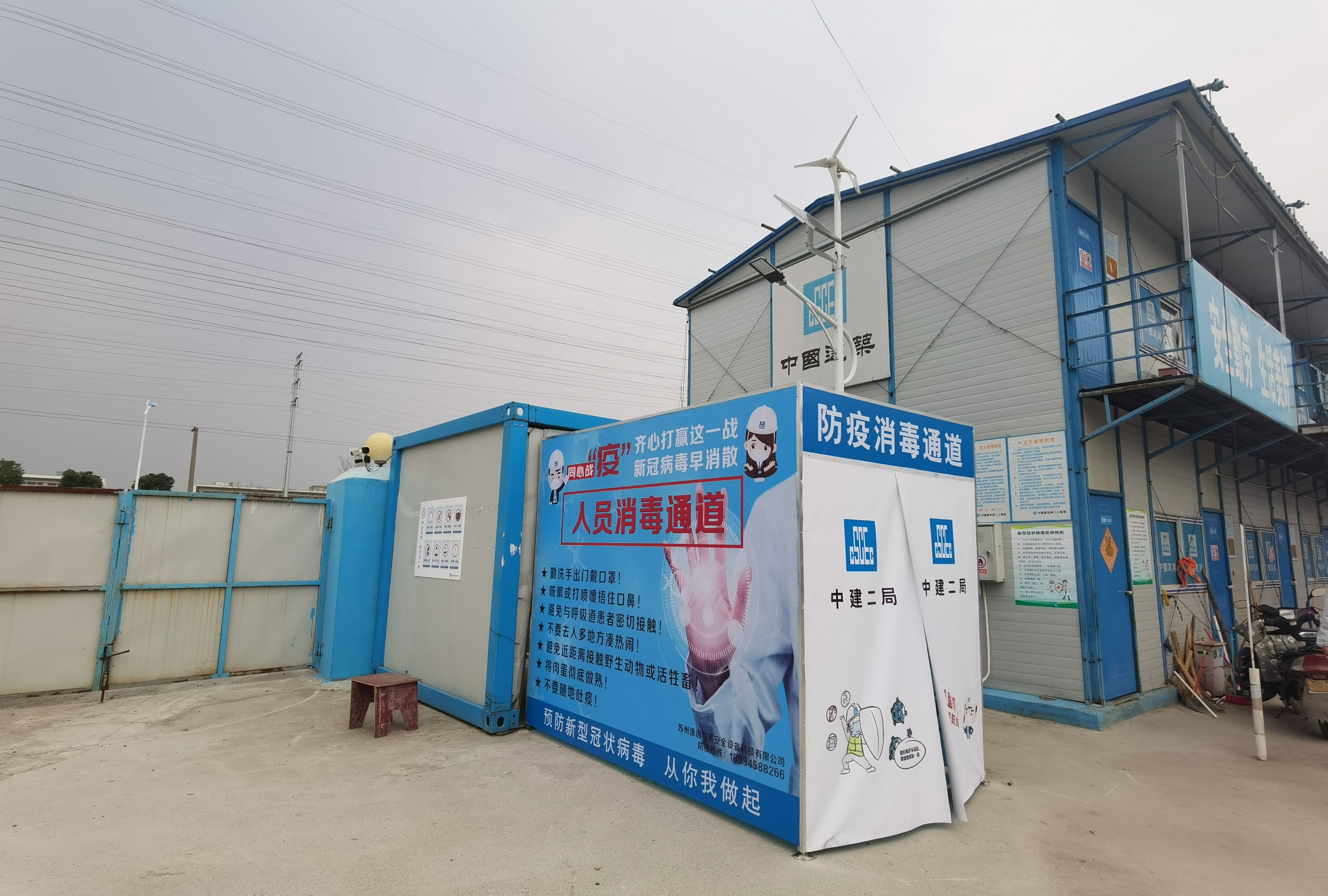 經(jīng)過(guò)新冠病毒核酸檢測(cè)后的工人,每天由消毒通道消毒后到施工現(xiàn)場(chǎng)進(jìn)行工作,下班后再次接受消毒通道消毒,返回宿舍,落實(shí)宿舍——消毒通道——施工現(xiàn)場(chǎng)三點(diǎn)一線的管理。