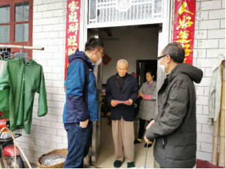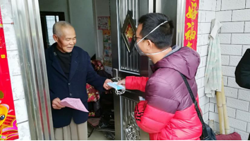 駐村干部入戶為貧困戶發(fā)放防疫口罩