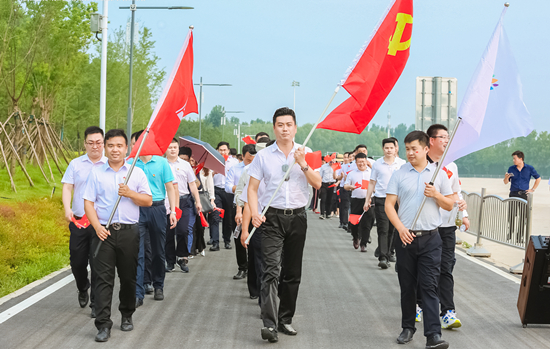 在炎黃廣場(chǎng)上,商會(huì)秘書長周亮宣讀倡議書,倡導(dǎo)全體會(huì)員通過此次活動(dòng)要強(qiáng)化企業(yè)綠色發(fā)展理念,爭(zhēng)當(dāng)綠色發(fā)展的踐行者、參與者、受益者,共同守護(hù)好我們的母親河——黃河,積極投身光彩事業(yè)和社會(huì)公益慈善事業(yè),主動(dòng)參與精準(zhǔn)扶貧行動(dòng),更多更好地回饋社會(huì)、回報(bào)家鄉(xiāng),自覺履行社會(huì)責(zé)任。