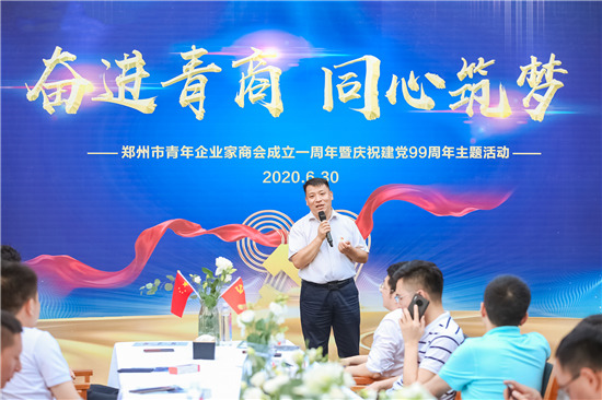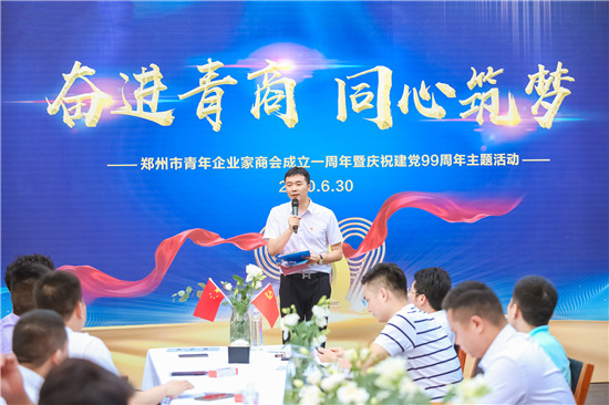 為慶祝建黨99周年,6月30日下午,鄭州市青年企業(yè)家商會(huì)舉辦“奮進(jìn)青商,同心筑夢(mèng)—— 慶祝建黨99周年暨商會(huì)成立一周年”主題活動(dòng)。鄭州市工商聯(lián)副主席許元浩,鄭州市工商聯(lián)副主席、鄭州市青年企業(yè)家商會(huì)會(huì)長、商會(huì)黨支部書記朱加軍,商會(huì)領(lǐng)導(dǎo)班子成員以及商會(huì)黨支部全體黨員參加了此次活動(dòng)。