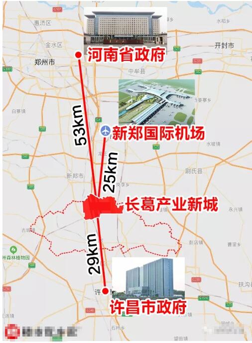 長葛地處鄭州和許昌之間,距鄭州中心城區(qū)50公里,距航空港區(qū)和許昌市區(qū)各25公里,居中串聯(lián)鄭州、許昌兩大產(chǎn)業(yè)基地,接受鄭州、許昌、空港三地聯(lián)動輻射,其臨港、接鄭、聯(lián)許的區(qū)位優(yōu)勢,在鄭州大都市區(qū)內(nèi)無可比擬。