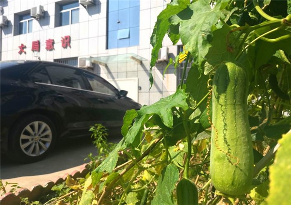 (圖:員工菜園內(nèi)絲瓜已銜華佩實(shí))