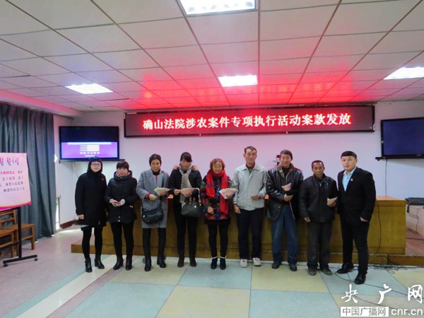 央廣網(wǎng)河南分網(wǎng)12月7日消息 12月6日上午,確山縣人民法院舉行涉農(nóng)案件案款發(fā)放儀式,為9名農(nóng)民工集中發(fā)放執(zhí)行案款。一位領到案款的農(nóng)民工一邊道謝一邊感慨法院效率高。“謝謝你們,沒想到那么快就拿到錢了。為了要工資我們都快把他家門檻踩破了,要了一年多他就是不給,實在沒辦法才向法院起訴。沒想到你們那么快就把錢替我們要回來了,謝謝你們!”