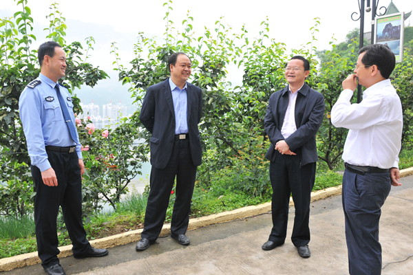 銅仁市委常委、政法委書記、公安局局長張濤(右二)到思南縣指導(dǎo)工作,左一為思南縣委書記胡洪成;右二為思南縣委常委、政法委書記、公安局長史大高。