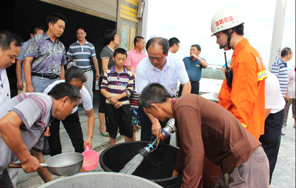思南縣委常委、政法委書記、公安局長史大高同志(右三)指導(dǎo)抗旱救災(zāi)工作