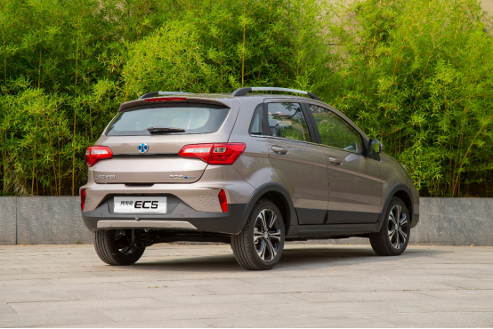 車身側(cè)面造型銳利、硬朗,腰線一直延伸至尾燈,讓車身側(cè)面極富立體感。輪拱以及黑色的包邊,使SUV風(fēng)格更加顯著。北汽新能源EC5的車身采用源自薩博的Safecage技術(shù)、歷經(jīng)百萬公里嚴(yán)酷檢驗(yàn),尺寸(長寬高)達(dá)到4122/1750/1583mm,軸距為2519mm,可以勝任日常用車。