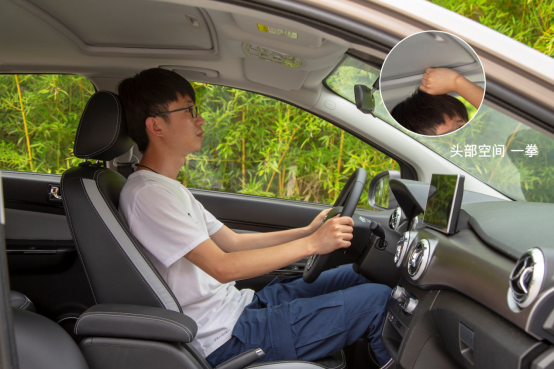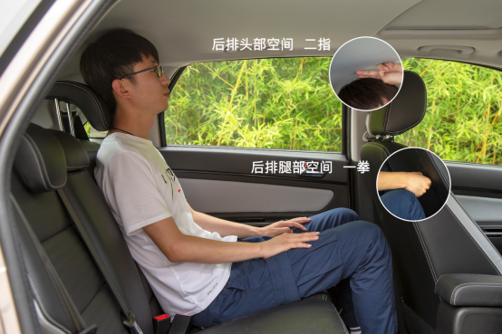 在前排座椅調(diào)整到舒適坐姿之后,測試者在后排的頭部空間超過兩指,腿部空間超過一拳,日常乘坐寬敞舒適。