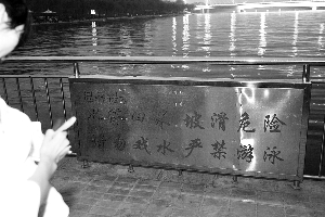 昨晚,記者在運(yùn)河?xùn)|碼頭采訪時(shí)發(fā)現(xiàn),出事運(yùn)河附近設(shè)有“水深4米、坡滑危險(xiǎn)、請(qǐng)勿戲水,嚴(yán)禁游泳”的警示牌。