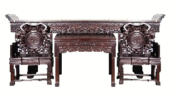 以紫檀、紅酸枝等優(yōu)質(zhì)良材制作的中堂家具,是勁飛的代表性系列產(chǎn)品之一,歷來受消費者歡迎,是享譽業(yè)內(nèi)外的精品紅木家具組合套件(如圖)。