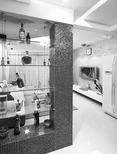 提醒:進門就是客廳的超小戶型,用吧臺做隔斷可以做加高設計、酒架設計,再擺放些裝飾品,或者直接在進門口處掛放珠簾、紗簾或者擺放窄幅屏風,也能起到半遮擋的作用。