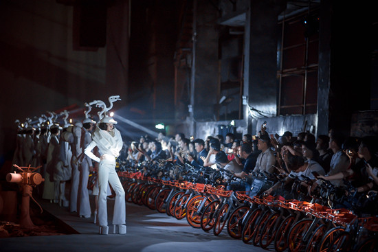 胡社光表示,希望通過時裝與生活的結(jié)合,傳遞出時尚與生活的聯(lián)系,以及倡導低碳環(huán)保的摩拜精神,F(xiàn)場還特別安排了由一百多輛摩拜單車組成的嘉賓觀秀坐席,嘉賓們在摩拜單車上欣賞這場開幕巨秀。這在秀場上絕無僅有的設(shè)置,與服裝作品相得益彰,借此傳遞出生活中處處有時尚的時尚精神。