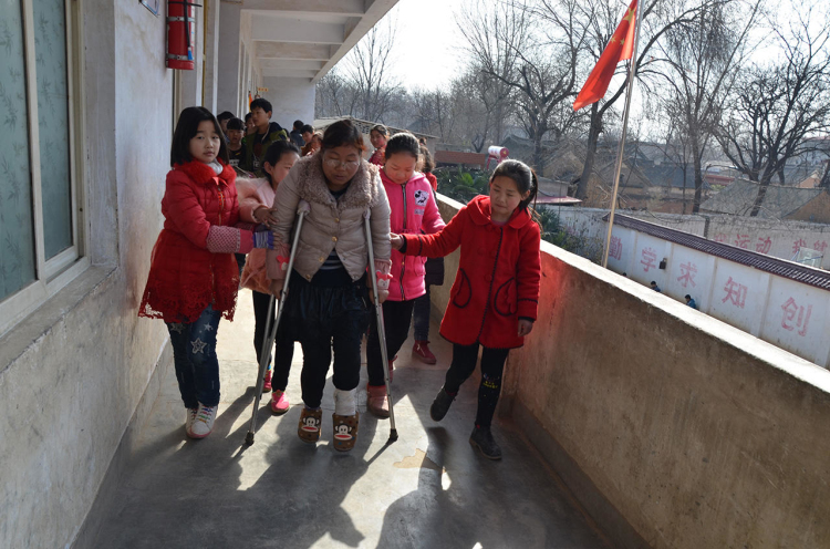 央廣網(wǎng)河南分網(wǎng)消息 這幾天,在河南郟縣中小學教師的微信群里,流傳著幾張照片:一名鄉(xiāng)村女教師,拄著雙拐,在校園里的臺階上、樓梯上吃力地行走著。這些照片被師生轉(zhuǎn)發(fā)后,在當?shù)匾鹆瞬恍〉霓Z動,大家一致評論:夠敬業(yè)!真堅強!
