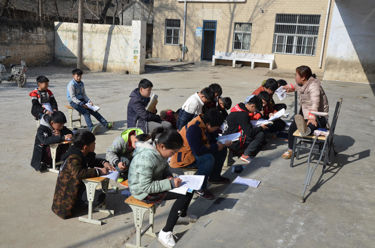學校是寄宿制學校,中午天氣不錯,吃完午飯,薛老師把成績不太好的幾名同學集中在教學樓前的廣場上,給大家補習功課。