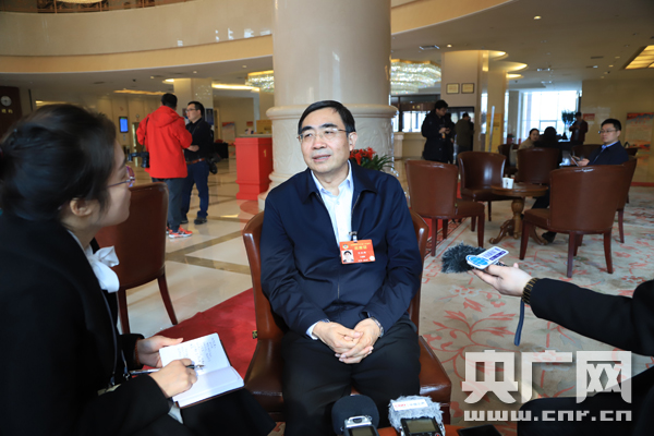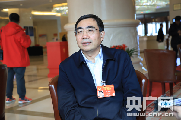 全國政協(xié)委員、河南大學校長宋純鵬在駐地接受記者采訪(央廣網(wǎng)記者 張佳琪 攝)