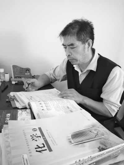 “劉老師就像永遠沒有家一樣!”學(xué)生陳迪新在電話中說,無論盛夏還是嚴(yán)冬,劉老師每天早晨5點30分起床,夜晚11點等學(xué)生全部休息后才回家,除了睡覺和吃飯,他都跟學(xué)生在一起。每次批改作業(yè),學(xué)生的閃光點、不足之處都具體到人,詳細(xì)記錄,逐個糾正每個學(xué)生的錯誤。翻開同學(xué)們的課本和練習(xí)冊,都留下了劉老師的筆記,增、刪、補甚至大段的批注、警示不計其數(shù),“他一年的工作量是常人幾年都無法企及的!