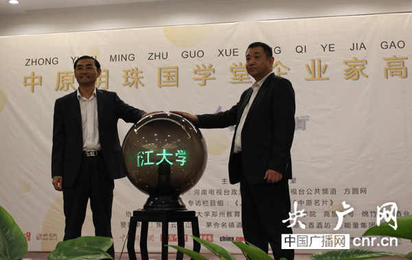 國學(xué)堂與浙江大學(xué)繼續(xù)教育學(xué)院鄭州培訓(xùn)基地的雙方代表共同啟動儀式水晶球