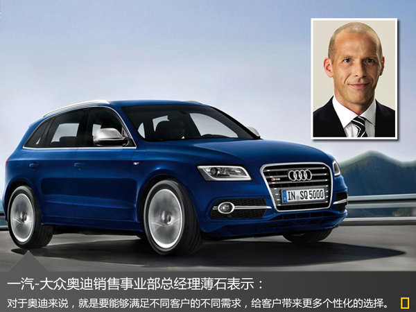 對(duì)于該款車(chē)型的推出,葛樹(shù)文先生曾表示:“2015年前將會(huì)引入奧迪品牌全系42款產(chǎn)品,其中今年將引入10款新車(chē)!背嗽摽頢Q5,未來(lái)還將有更多個(gè)性化奧迪品牌車(chē)型導(dǎo)入中國(guó)市場(chǎng)。