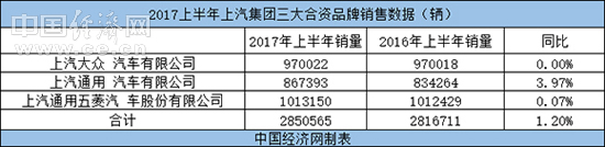 中國汽車工業(yè)協(xié)會發(fā)布公告:1-5月,我國汽車銷量為1118.2萬輛,比上年同期增長3.7%,累計銷量增速降到5%以下,車市整體形勢嚴峻。作為國內(nèi)最大的汽車集團,上汽集團也受到車市低迷的影響而增速放緩,其中合資品牌受到?jīng)_擊尤為明顯。上汽集團旗下上汽大眾、上汽通用、上汽通用五菱三大品牌上半年銷量占集團總銷量的89.80%,是上汽集團的貢獻核心,但僅上汽通用同比微幅增長,上汽大眾與上汽通用五菱幾乎零增長。