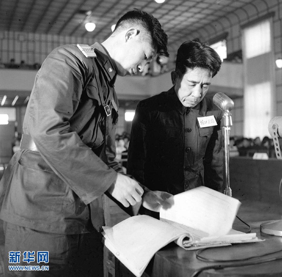 1956年7月1日至7月20日,最高人民法院特別軍事法庭在沈陽審判偽滿洲國國務(wù)院總務(wù)長官武部六藏等28名日本戰(zhàn)犯。這是被告人堀口正雄在供認了罪行后,法庭將證實他罪行的檔案、證人證詞、被害人控訴書等證據(jù)給他看。