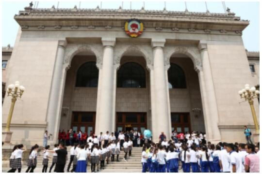 全國(guó)政協(xié)禮堂外排隊(duì)等候入場(chǎng)的觀眾