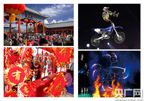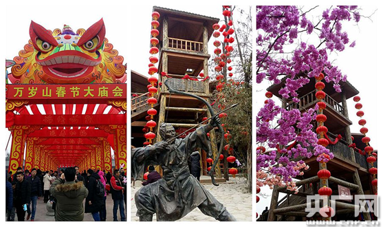 “春節(jié)期間,我們的演出從早上8:50開始到晚上6點(diǎn)結(jié)束,全天共240場(chǎng),其中大的表演場(chǎng)地15個(gè),小的幾十個(gè)。這些演出包括武俠實(shí)景劇、魔術(shù)、雜技以及國(guó)內(nèi)外一流的歌舞演出等,有的精彩刺激,有的具有民俗特色!比f(wàn)歲山景區(qū)負(fù)責(zé)人楊子涵介紹說(shuō),“據(jù)我們統(tǒng)計(jì),今年初一到初四的客流量比去年增長(zhǎng)了100%,收入比去年增長(zhǎng)了130%!