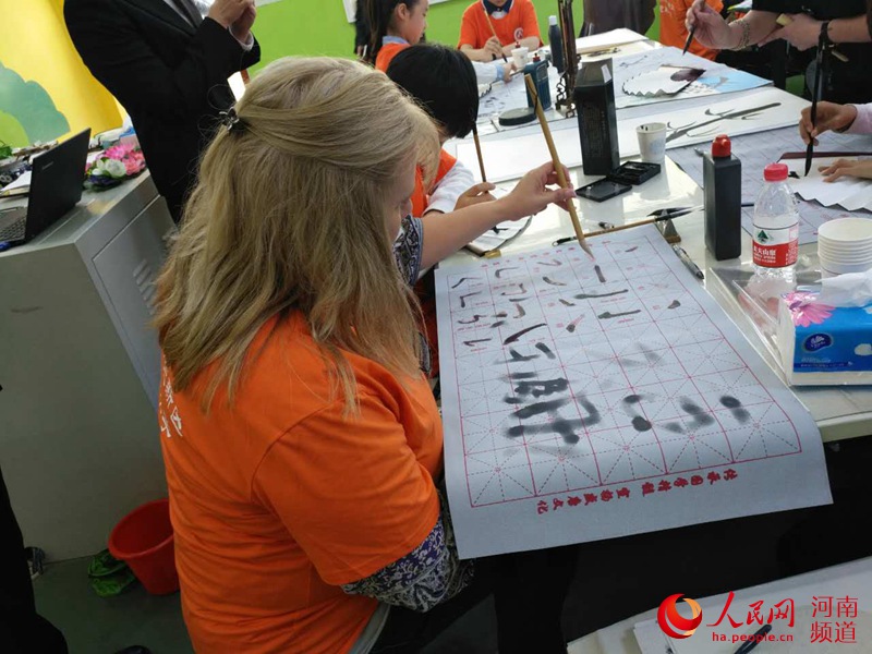 美國小朋友練習(xí)寫毛筆字