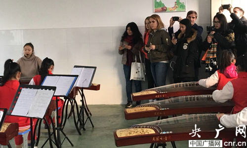 在許慎小學(xué)老師的帶領(lǐng)下,留學(xué)生們參觀了學(xué)校古箏、管樂、美術(shù)、繪畫、戲曲等特色班級,并現(xiàn)場觀看了孩子們的才藝展示,孩子們的優(yōu)秀表現(xiàn)讓留學(xué)生們驚嘆不已。