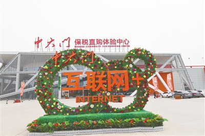 在位于經(jīng)開區(qū)第九大街的河南綜合保稅物流中心里,“中大門”三個(gè)字赫然醒目,“向買全球賣全球邁進(jìn)”的標(biāo)語也格外引人注目。
