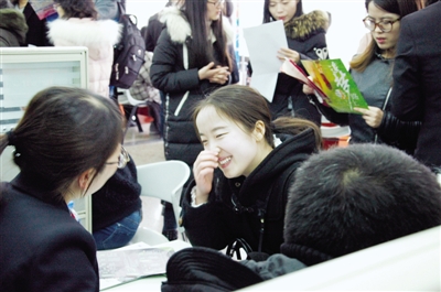 一名求職女孩笑得很開心,看來“薪”情不錯(cuò)