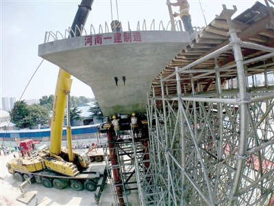 四環(huán)線快速化首片節(jié)段梁吊裝成功